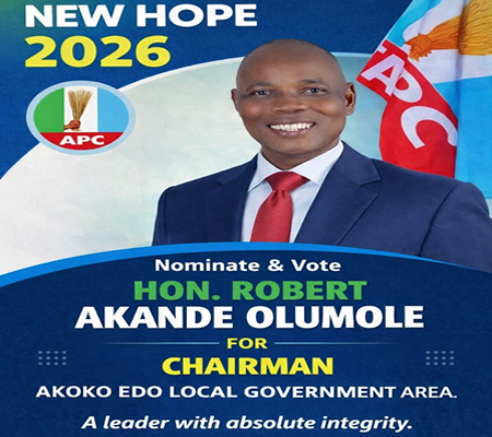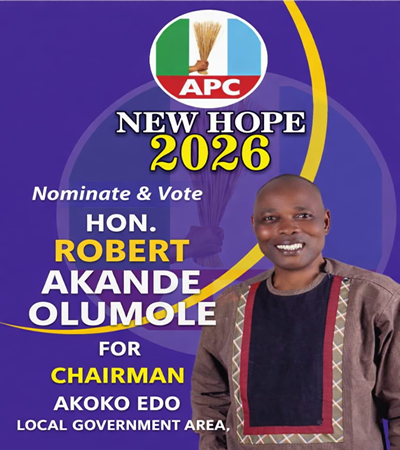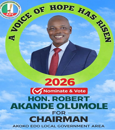 Hon. Robert Akande Olumole envisions an Akoko-Edo where every community feels represented, every youth sees opportunity, and every family experiences progress.